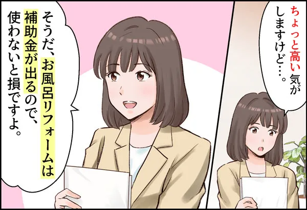 お風呂のリフォームに、補助金がもらえることを教えてくれました。