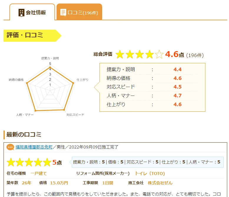 例:福岡の株式会社ぜんの評価