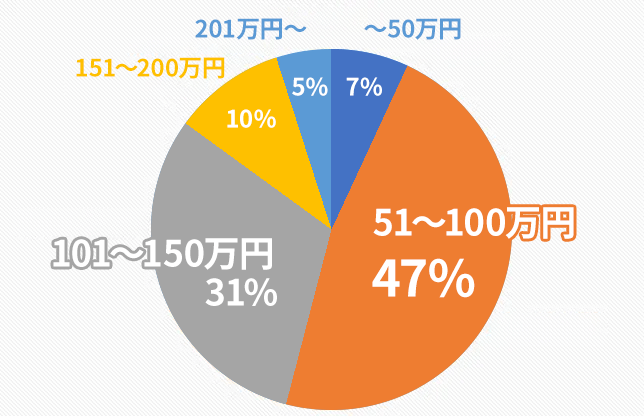 最新のリフォーム費用のアンケートでは50~99万円が相場となっているようです。
